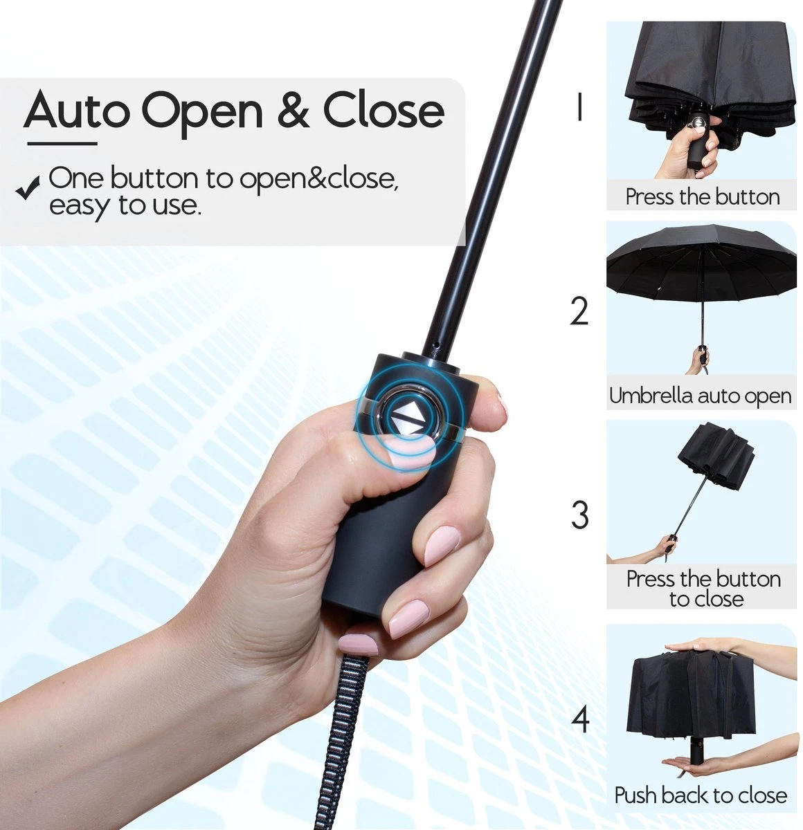 ✔ Automatisch openings- en sluitingsmechanisme (paraplu opent en sluit met 1 drup op de knop)