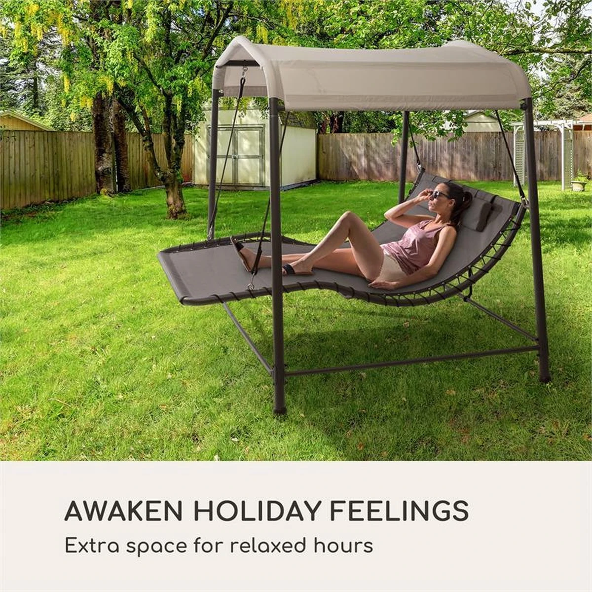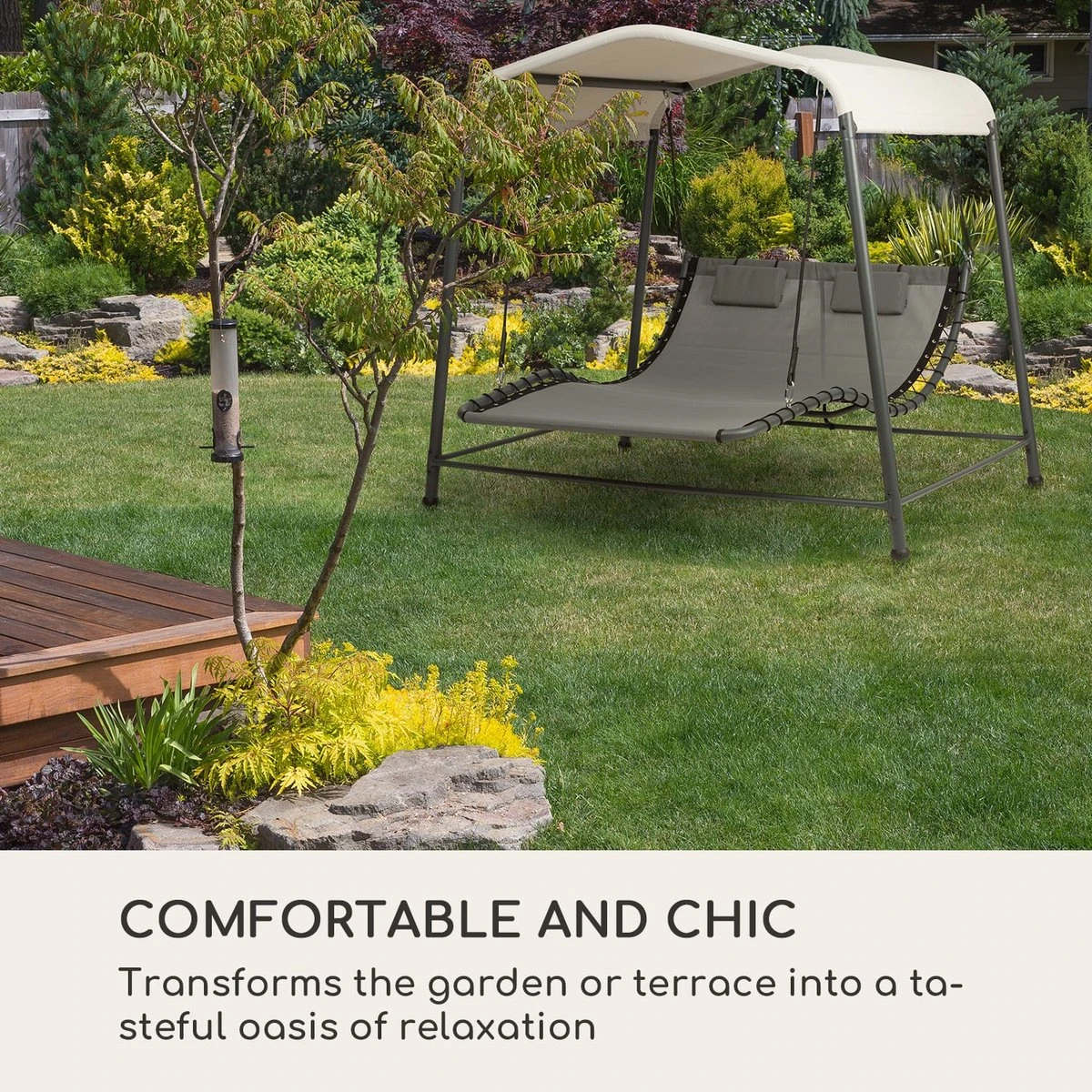 Blumfeldt Palermo Schommelbank – Hollywoodschommel 130 X 207 Cm – Ligbed Met Dak – Schommelstoel Voor 2 Personen – Tuinbank Inclusief Nekkussens – Stalen Frame En Polyester Dak – Grijs