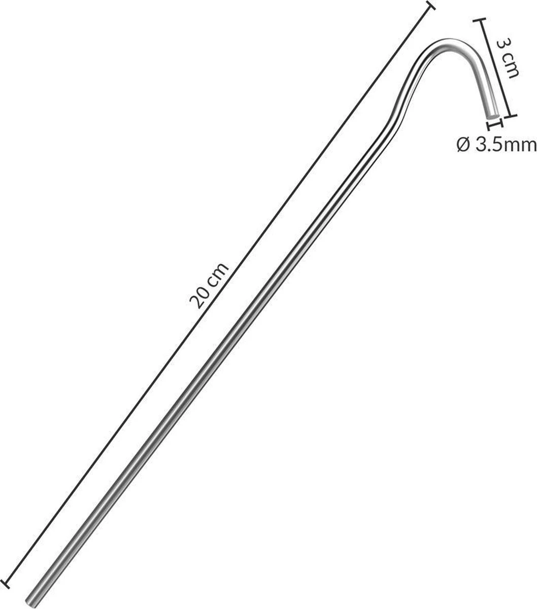 De stevige stalen haringen zijn geschikt voor normale grond (bos en weide) en kunnen eenvoudig met een rubberen hamer in de grond geslagen worden.