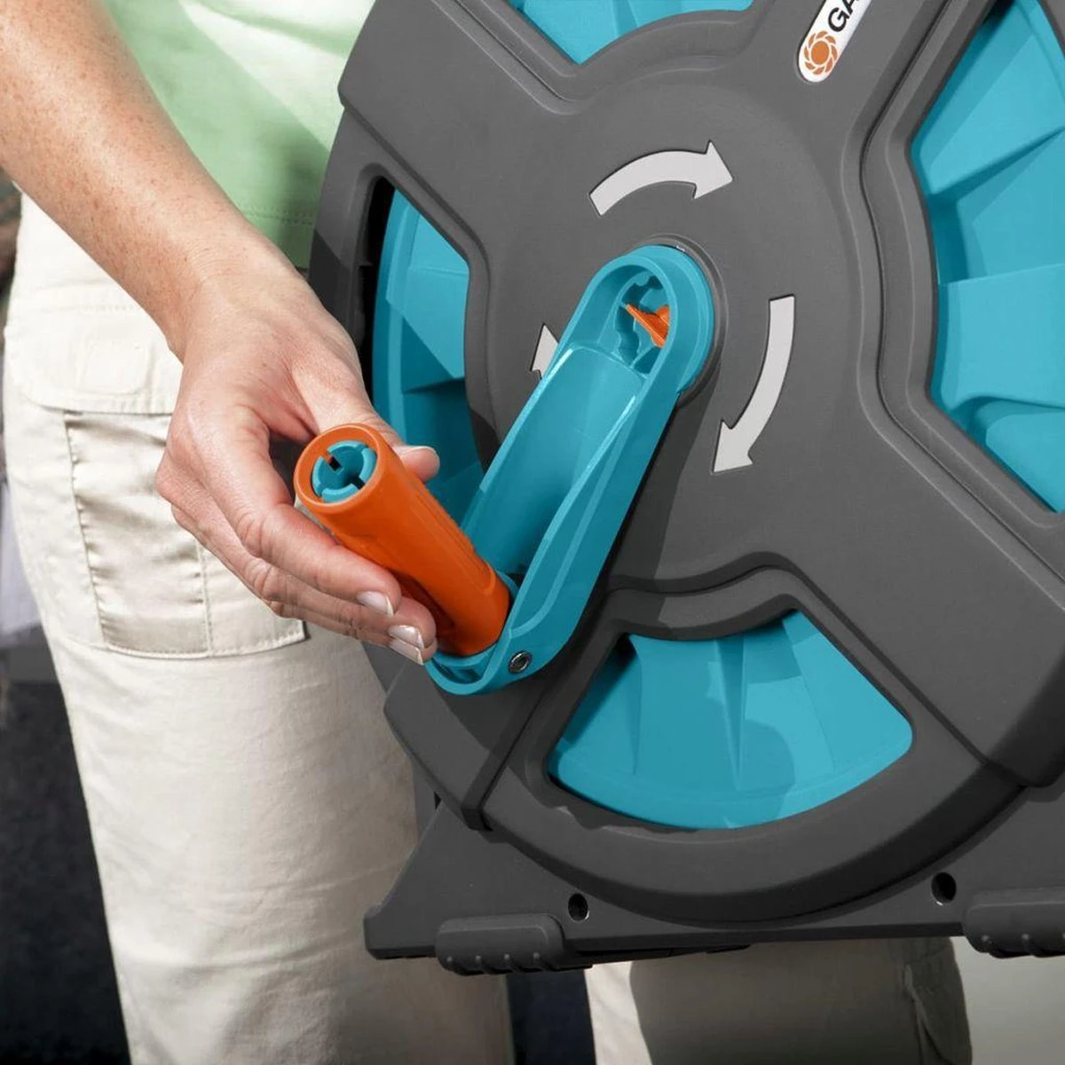 De GARDENA Classic slangenbox 15 compleet is klein en compact. Hij is ideaal om te vervoeren, bijv. bij kamperen, vrijetijdsactiviteiten en watersport. Door zijn geringe gewicht is hij eenvoudig te dragen. De zwengel en de draaggreep kunnen worden ingeklapt. Daarom heeft de slangenbox maar heel weinig ruimte nodig en past hij in auto of caravan. De set omvat een 15 meter lange kwaliteitsslang en een 1,5 meter lange aansluitslang. Alle GARDENA System aansluitstukken en een GARDENA reguleerbaar spuitpistool zijn gemonteerd. De slangenbox is gereed voor gebruik – sluit hem gewoon aan op de waterkraan, rol de slang af tot de gewenste lengte af water geven maar. Overal en altijd nuttig.