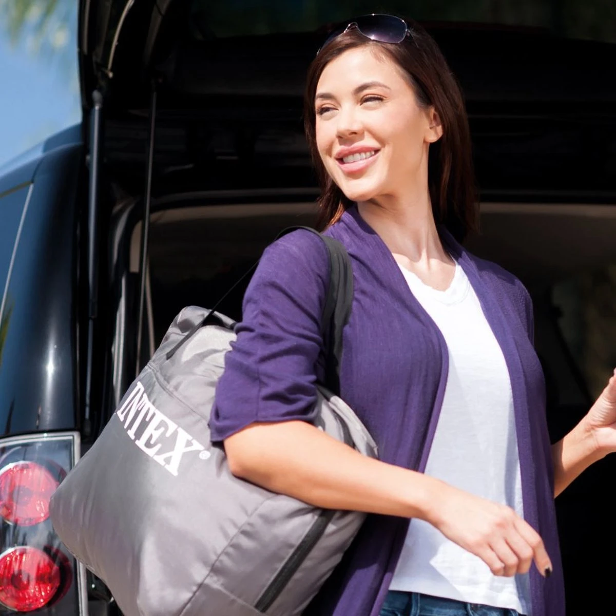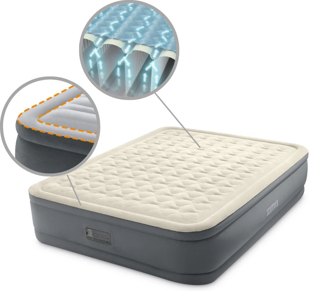 De luxueuze toplaag van Intex luchtbed voelt extra zacht aan en zorgt ervoor dat de lakens op hun plek blijven zitten