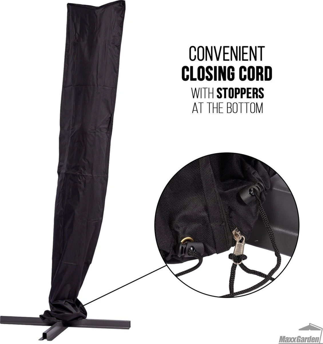 MaxxGarden Parasolhoes – Afdekhoes Voor Zweefparasol – Beschermhoes – 200-400 Cm – Met Rits En Trekkoord – Zwart